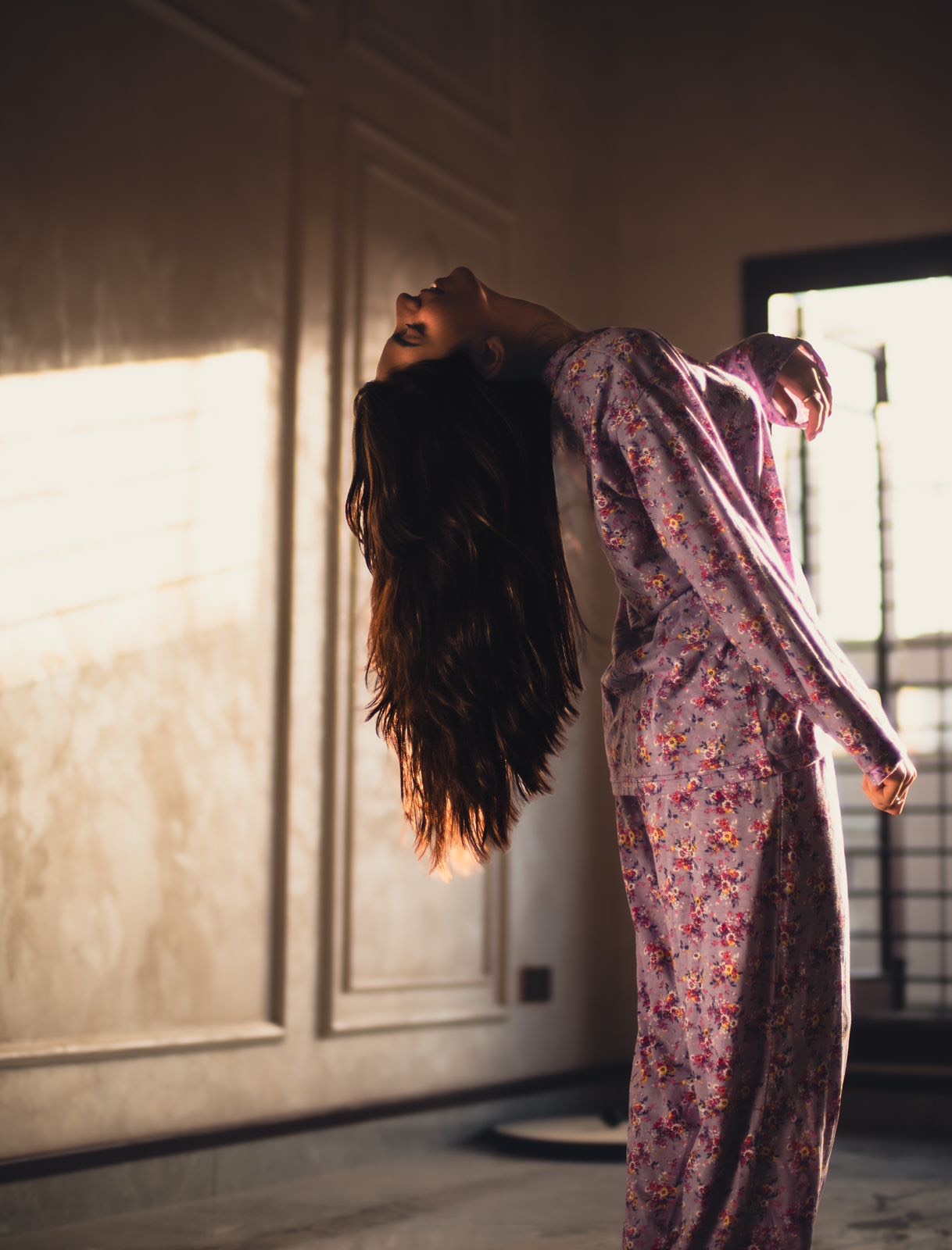 - Beautiful purple floral print and soft collar.