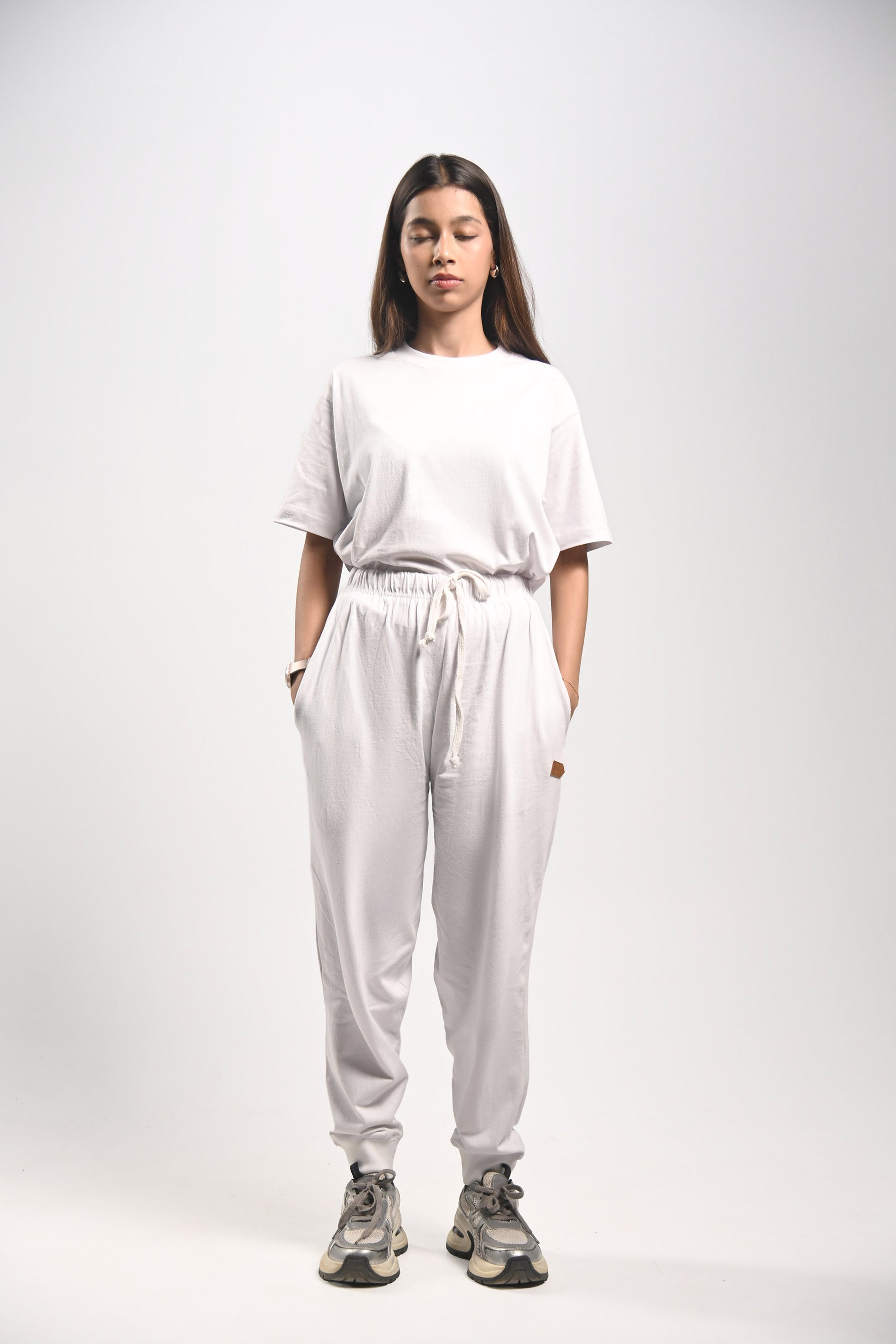 Soft jogger pants paired with your preferred T-shirt fit — Regular or Box.