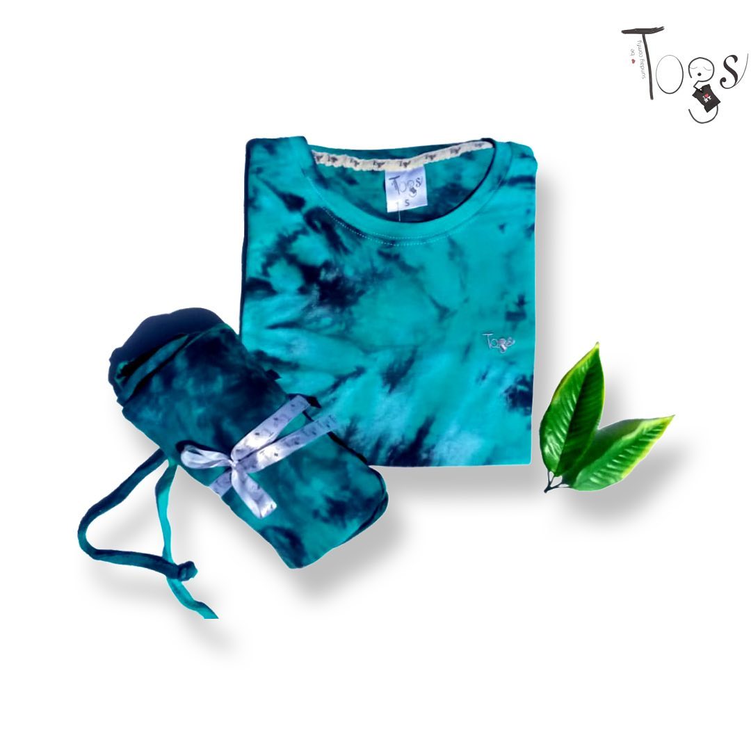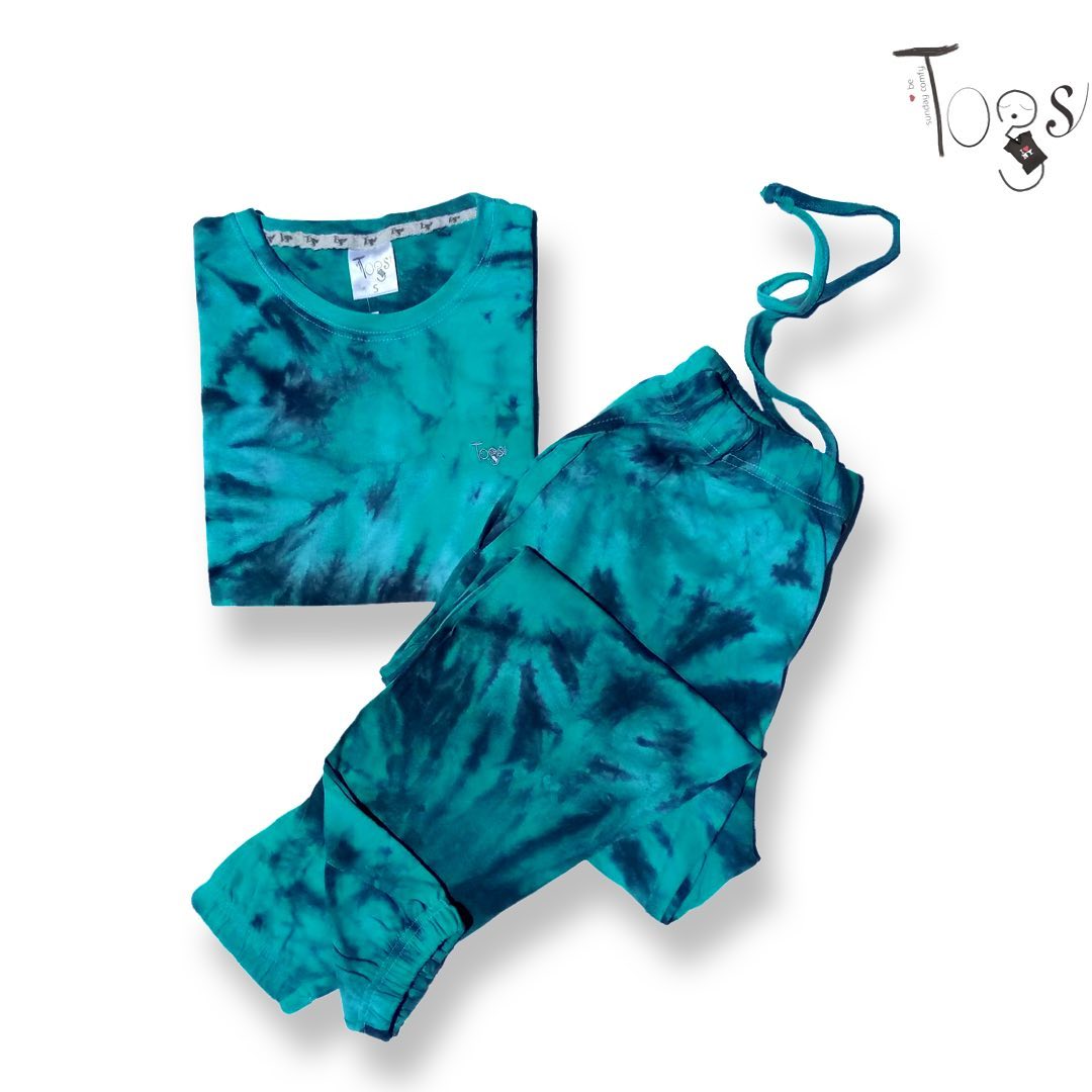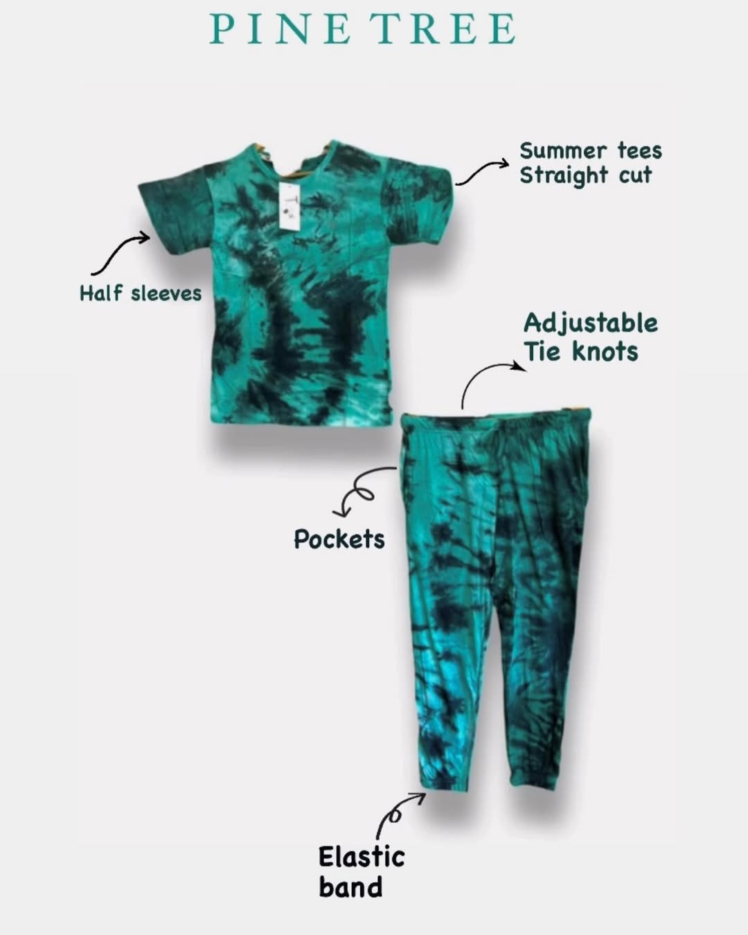 This lounge set is made from soft, sustainable 100% cotton jersey. It features a comfy round neck, half sleeves, and adjustable waistband trousers with an elastic narrow bottom. The color won’t fade, even after washing. Matching kids sets are also available for family twinning!